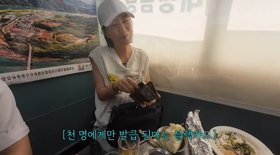 그녀는 "나 진짜 오래 들고 다닌 지갑이다. 10년도 넘은 것 같다. 자랑할까 말까"라며 고민하다 "내 카드는 블랙"이라며 장난스럽게 재력을 과시했다. 제작진은 자막으로 "천 명에게만 발급된다는 블랙카드"라고 설명했다.