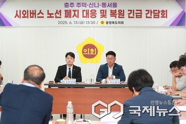 (청주=국제뉴스) 이상석 기자 = 충북도의회 행정문화위원회는 13일 조성태 의원(충주1) 주재로 도의회 7층 회의실에서 '충주 주덕·신니~동서울 시외버스 노선 폐지 대응 및 복원 간담회'를 개최했다.