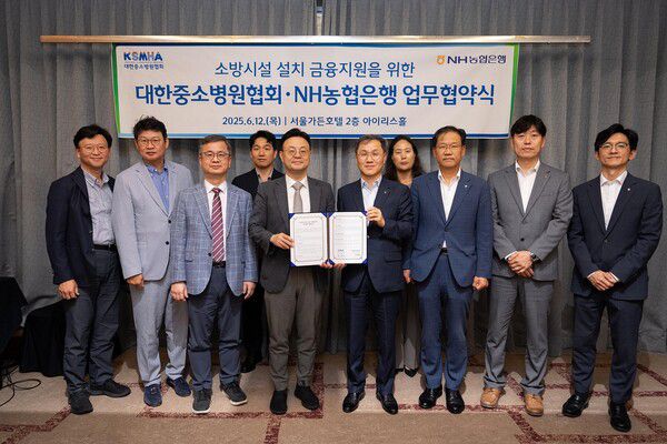 NH농협은행은 대한중소병원협회(회장 김진호)와 지난 12일 마포구 소재 서울가든호텔에서 '중소병원 소방시설 설치 지원을 위한 업무협약'을 체결했다고 13일 밝혔다.