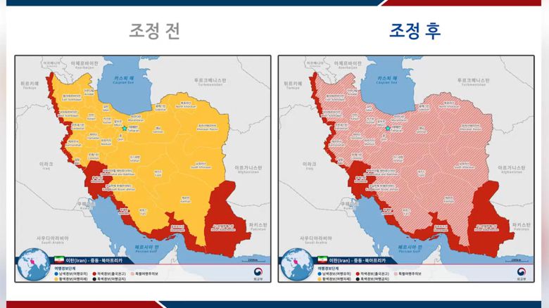외교부는 중동 지역 정세가 급격히 악화되는 점을 고려해 현재 이스라엘과 이란 내 여행자제 지역이던 곳의 여행경보를 모두 상향한다고 오늘(13일) 밝혔습니다.