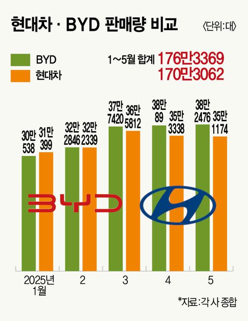 BYD 1~5월 판매량 현대차 앞서
