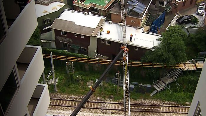 소방 당국과 코레일은 중장비를 동원해 사다리를 치우고 선로 복구 작업을 벌여 낮 1시 30분 운행을 재개했습니다.