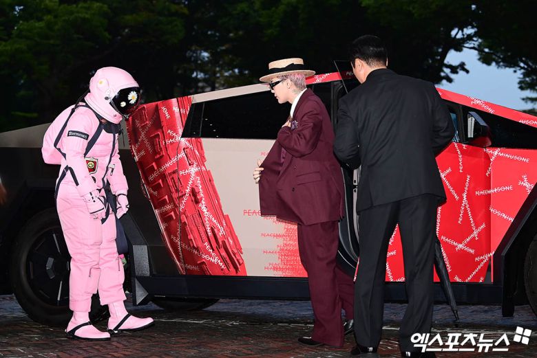 당초 19시에 예정되어 있던 포토세션이었으나 19시 40분을 넘겨 행사장에 도착한 지드래곤. '피스마이너스원' 로고가 래핑된 사이버트럭을 타고 등장한 지드래곤은 별다른 인사말 없이 포토타임을 소화한 뒤 본 행사장으로 향했다.