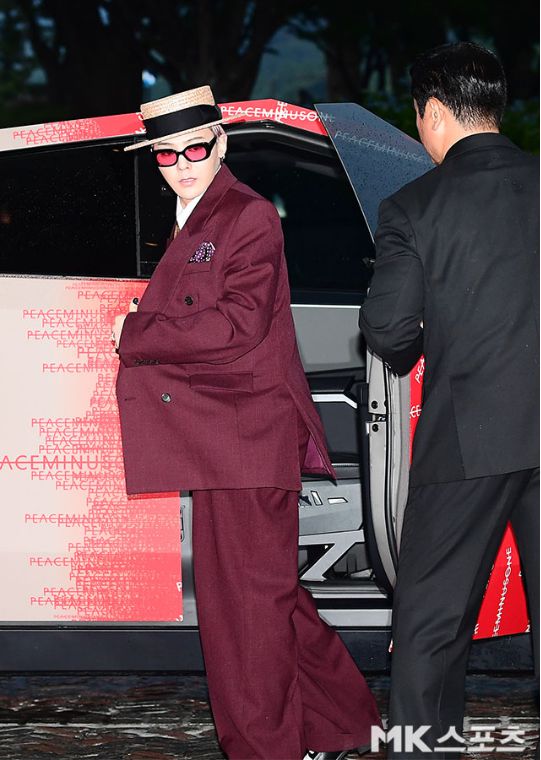 지드래곤은 13일 오후 서울 용산구 그랜드 하얏트 호텔에서 열린 브랜드 피스마이너스원(PEACEMINUSONE) 행사에 참석했다.