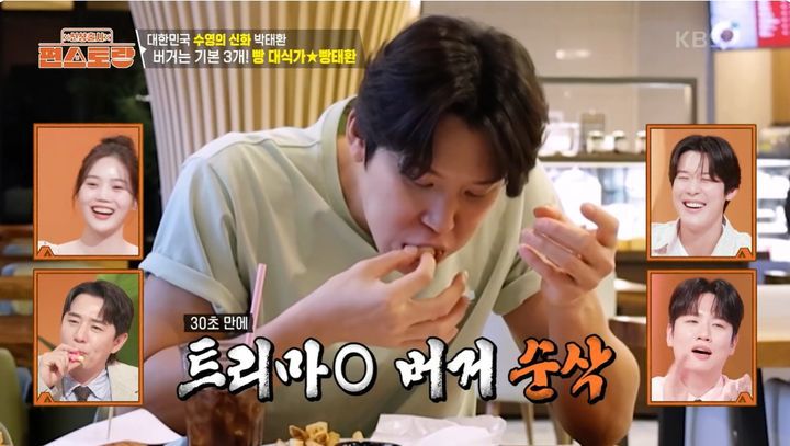 출연진이 "햄버거 맛이 어떠냐"고 묻자 박태환은 '전혀 기대를 안 하고 갔는데 맛있다. 가성비가 엄청 좋다. 원래 수제버거는 만원 이상인데 여기는 세트가 6000~7000원"이라고 말했다.