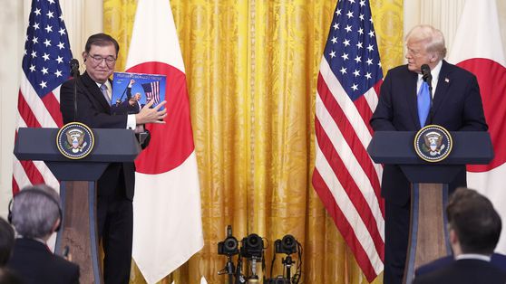 도널드 트럼프 미국 대통령(오른쪽)과 이시바 시게루 일본 총리. AP=연합뉴스