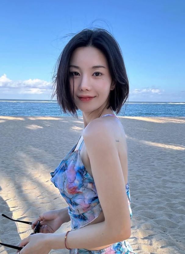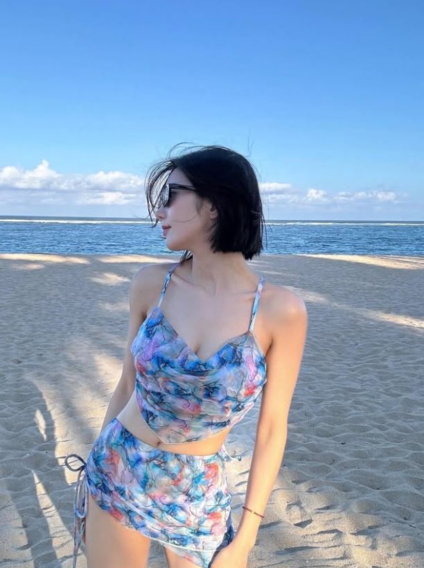 또 다른 사진에서는 하늘색 바탕에 꽃무늬처럼 보이는 패턴 디자인이 새겨진 비키니 의상으로 색다른 매력을 발산했다.