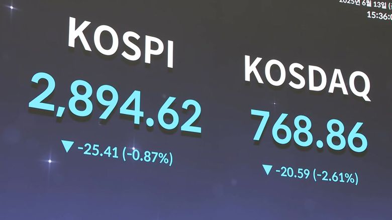 코스피 3천 선 기대감이 커졌던 주식시장이 이스라엘의 이란 공습과 미국의 추가 관세 인상 압박이 겹치며 8일 만에 하락했습니다.