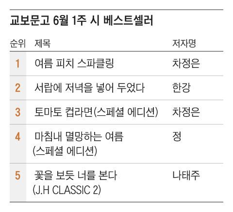 보기만 해도 마음이 청량해지는 시집이 교보문고 6월 1주 시 분야 베스트셀러 1위에 올랐다. 차정은(19) 작가의 시집 ‘여름 피치 스파클링’(다이브)이다. 같은 분야 3위에 올라 있는 ‘토마토 컵라면’(부크크)으로 10·20대의 ‘시 읽기 열풍’을 주도했던 시인의 신작이다.