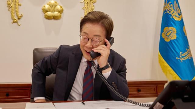 이재명 대통령이 10일 서울 용산 대통령실 청사 집무실에서 시진핑 중국 국가주석과 전화 통화를 하고 있다. 대통령실 제공 |