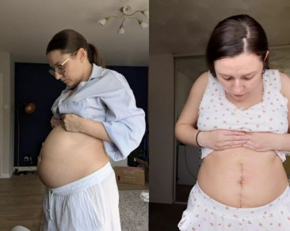 불룩 나온 배 때문에 임신 오해를 받던 영국 여성이 거대한 난소 낭종을 제거한 사연이 전해졌다. SNS 캡처