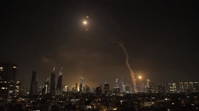 한밤중 이스라엘 텔아비브 상공에 미사일이 비처럼 쏟아집니다.