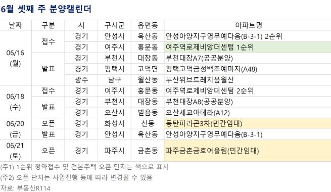 6월 셋째 주에는 전국에서 744가구가 분양에 나선다.