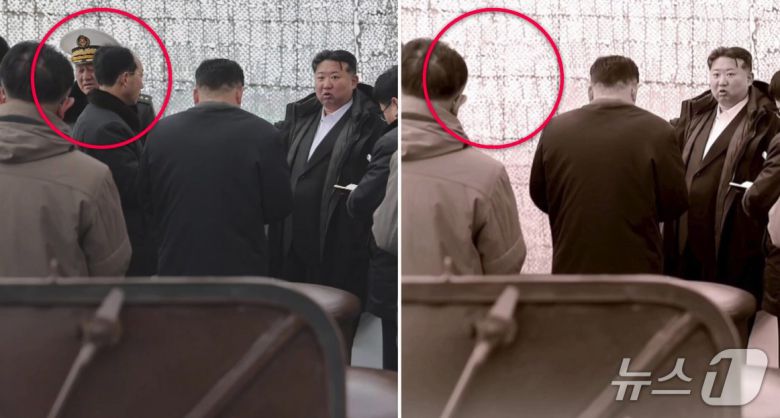 당시 보도에선 김명식 해군사령관과 홍길호 청진조선소 소장이 김 총비서와 함께 서 있었으나 이번엔 둘의 모습만 지워졌다.