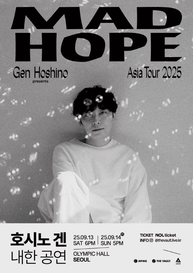‘호시노 겐 프레젠트 매드 호프 아시아 투어 인 서울’은 9월 13~14일 양일간 서울 올림픽공원 올림픽홀에서 열린다. 추가 공연 티켓은 오는 20일 오후 6시 NOL 티켓을 통해 단독 오픈된다.