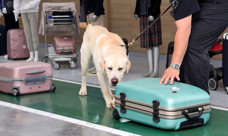 통관현장에서 탐지 활동을 하고 있는 마약탐지견 밀리(2019년생, 래브라도리트리버). |