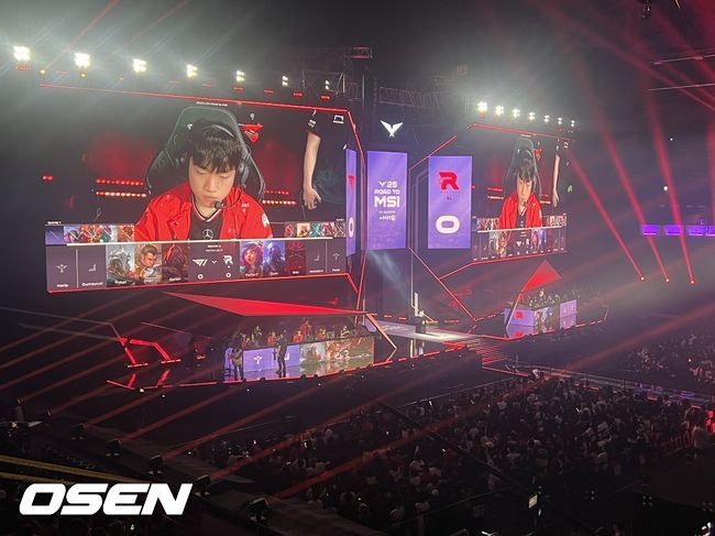 14일 오후 T1과 KT의 ‘로드 투 MSI’ 4라운드 경기가 열리는 부산 사직실내체육관의 5500석이 매진됐다. 전날 젠지와 한화생명 LCK 1번 시드 선발전이 4500명의 관중을 모객했기에 이번 부산 로드쇼 첫 매진이다.