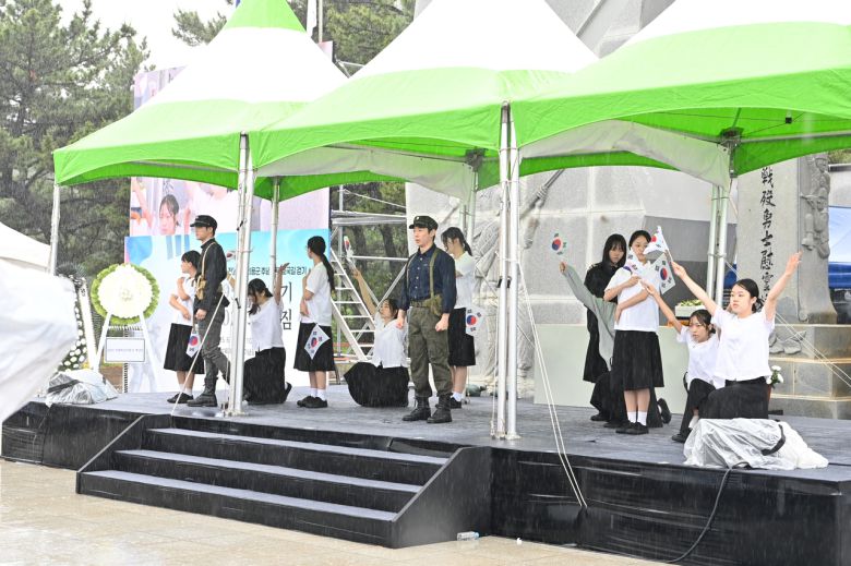 이어진 추모 공연 뮤지컬 ‘1950의 용기, 2025의 다짐’은 장사상륙작전에 참전한 학도병들의 실화를 바탕으로 한 공연으로, 참석자들에게 감동과 교훈을 동시에 전하는 큰 울림과 감동을 전했다.