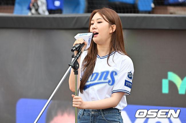 [OSEN=대구, 이석우 기자] 14일 대구삼성라이온즈파크에서 2025 신한 SOL 뱅크 KBO 리그 삼성 라이온즈와 KT 위즈의 경기가 열렸다. 홈팀 삼성은 후라도가, 방문팀 KT는 쿠에바스가 선발 출전했다. 가수 전유진이 삼성 라이온즈 승리 기원 시구에 앞서 애국가를 부르고 있다. 2025.06.14 / foto0307@osen.co.kr 이 기사의 카테고리는 언론사의 분류를 따릅니다.0공유하기