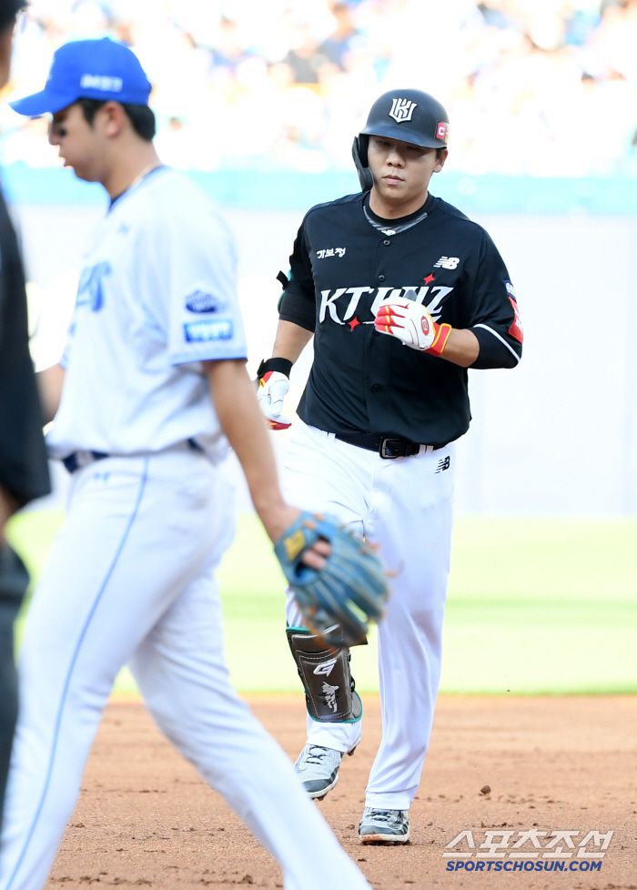 [포토] 이정훈 'KT 유니폼 입고 첫 홈런'