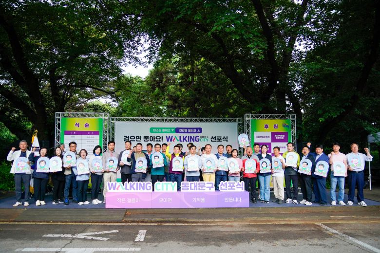 [헤럴드경제=박종일 기자]서울 동대문구(구청장 이필형)는 14일 국립산림과학원 홍릉숲길에서 약 2000명의 주민이 참여한 가운데 ‘걸으면 좋아요! Walking City 동대문구’ 선포식을 개최, 걷기 중심 도시로의 전환과 생활 속 탄소중립 실천을 위한 첫걸음을 내디뎠다.
