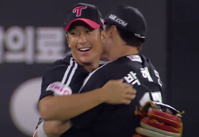 [서울=뉴스핌] 박상욱 기자 = 2-2로 맞선 연장 11회말 2사 후. 한화 안치홍이 2루타를 쳐 끝내기 기회를 만들었다. 다음 타자 이재원은 좌전 안타를 때렸고 안치홈은 홈으로 향해 뛰었다. 11회 좌익수로 수비 위치를 옮긴 LG 송찬의는 정확한 홈 어시스트(보살)로 안치홍을 태그 아웃시켰다. 포수 박동원이 안치홍을 기다리다 태그할 만큼 공은 빠르고 정확했다. 송찬의는 '택배 송구' 하나로 LG의 2위 추락을 막았다.