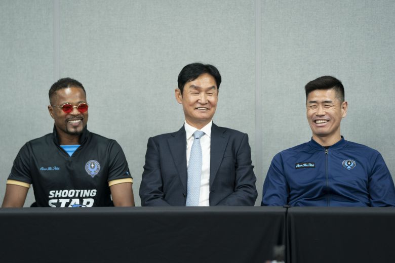 맨체스터 유나이티드 레전드이자 박지성의 절친으로 국내 팬들에게 알려진 파트리스 에브라가 깜짝 등장해 그라운드에 나섰다. 경기에 앞서 열린 기자간담회에서 최용수 감독과 나란히 앉은 에브라는 특유의 친근감으로 최 감독과도 웃으며 대화를 나눴다.