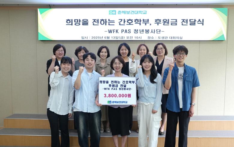 춘해보건대 간호학부는 13일 오전 10시 도생관 2층 대회의실에서 '희망을 전하는 간호학부, 후원금 전달식'을 진행했다고 밝혔다.