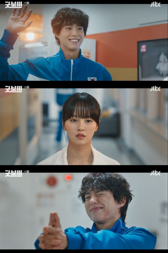 14일 방송된 JTBC 토일드라마 '굿보이' 5회에서는 지한나(김소현 분)가 윤동주(박보검)에게 입을 맞춘 모습이 그려졌다.