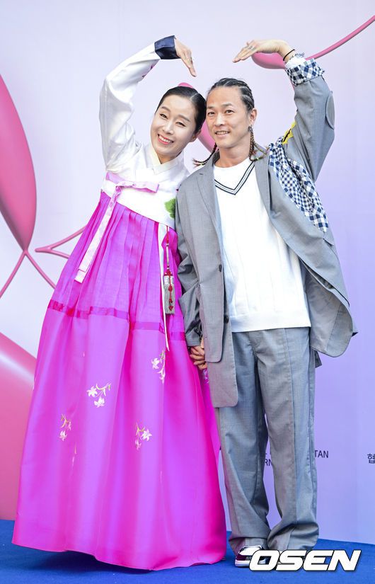 [OSEN=최규한 기자]19일 서울 중구 동대문디자인플라자(DDP)에서 2023F/W서울패션위크 ‘이상봉' 컬렉션 포토콜 행사가 열렸다.팝핀현준-박애리 부부가 행사에 참석해 포즈를 취하고 있다. 2023.03.19 / dreamer@osen.co.kr |