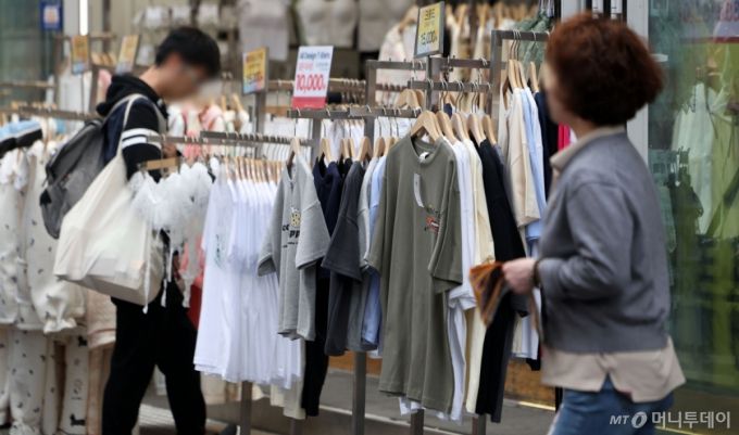 고물가에 위축된 소비자들은 의류부터 소비를 줄였다. 지난달 통계청 가계동향조사 결과에 따르면 지난 1분기 가구당 월평균 소비지출(295만원) 중 의류·신발 지출은 전년 같은 기간보다 4.7% 감소한 12만1000원이었다. 가구당 월평균 '직물 및 외의' 소비는 지난해 3분기(-3.3%)부터 올해 1분기(-5.3%)까지 3개 분기 연속 감소세를 보였다. 부진한 경기 변수와 더불어 이상기후의 영향도 작용한 것으로 분석된다.