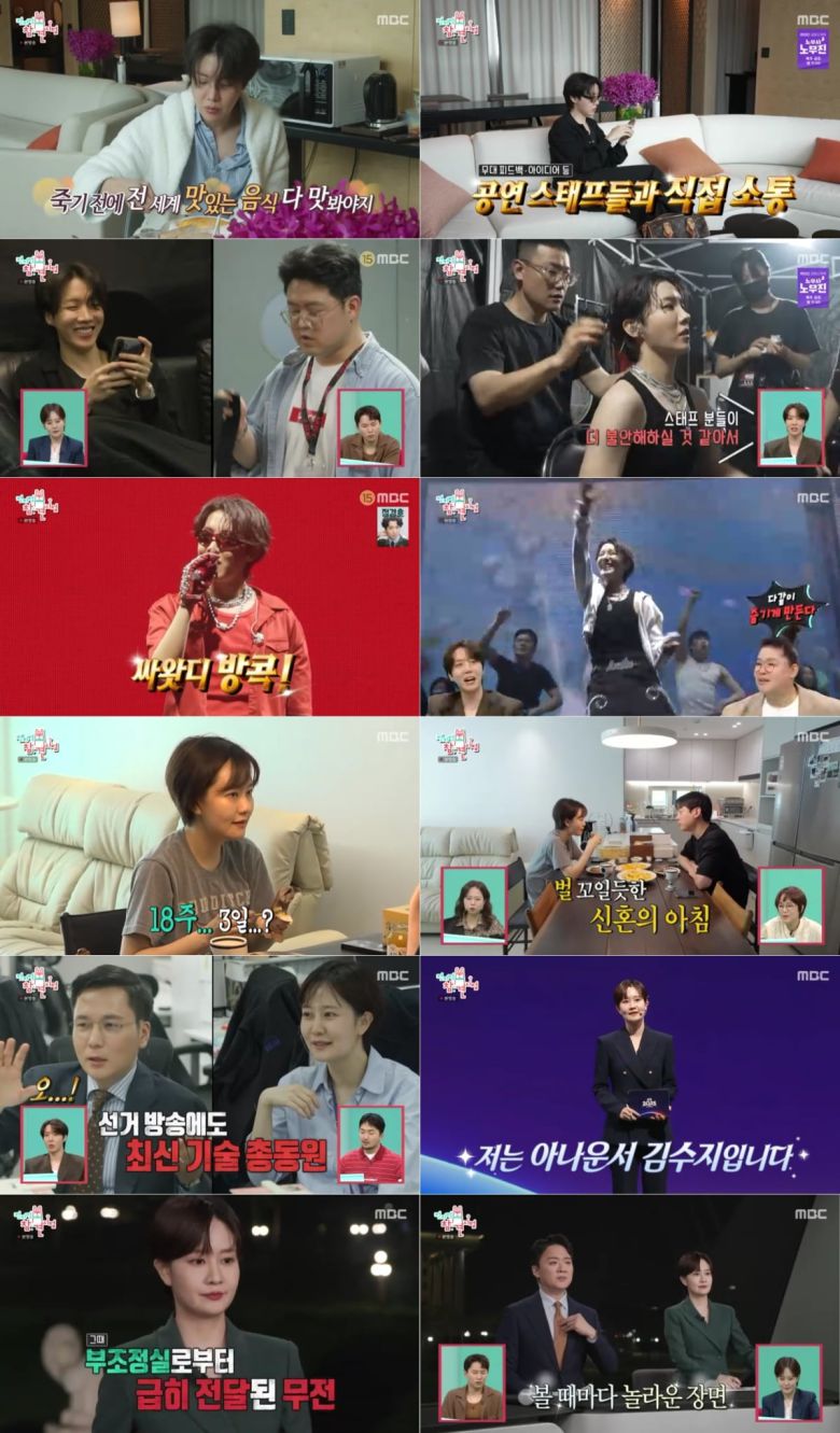 선거 방송 진행을 맡은 김수지는 MBC 제21대 대선 선거 방송 ‘선택 2025’ 최종 리허설로 분주한 하루를 보냈다. 그녀는 선배 전종환 아나운서에게 조언받은 뒤, 조현용 앵커, 이재은 아나운서 등 동료들과 프로미를 방출하며 리허설을 실시했다. 선거 방송 현장에는 와이어캠, 6면 LED 무대 등 최첨단 장비가 총출동해 있어 신선한 재미를 선사했다.