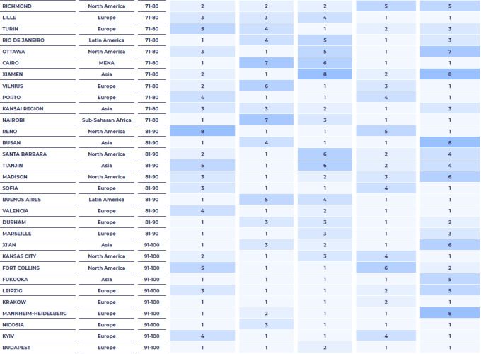 이번 순위를 통해 부산은 일본 후쿠오카보다 앞선 환동해안권역 선도 도시로서 입지를 재확인했다. 플러그앤플레이(PLUG AND PLAY)와의 협력 및 지사 설립 추진 등 미반영된 부분은 다음 평가부터 포함될 전망이다.