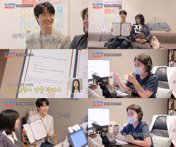 제작진이 근황을 묻자, 원혁은 "근황...이야기할 게 있긴 한데...근데 이거, 좀 민망한데..."라며 망설였다. 이수민은 "왜? 이건 자랑해도 돼"라며 원혁을 응원했다. 이에 힘입어 원혁은 "제가 뭘 하나 땄다"라며 국가 공인 '산모·신생아 건강 관리사 수료증'을 당당하게 펼쳤다. VCR을 지켜본 '사랑꾼 MC' 강수지도 격하게 놀란 가운데, 원혁은 산부인과 주치의에게 '대한민국 남자 최초'로 따낸 이 수료증을 자랑했다. 주치의는 "어머! (이런 남편은) 처음이다"라며 양손 엄지를 들어 올렸다. 그러자 원혁은 "이런 남편 없었죠?"라면서 뿌듯해했다. 또한 원혁의 노력에 주치의는 "산후 도우미 안 불러도 되겠다"며 이수민을 바라봤다. 이에 이수민은 "맞다"고 고개를 끄덕여 훈훈함을 자아냈다.