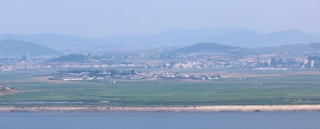 북한이 우리 군의 대북 확성기 방송 중지에 호응해 대남 소음 방송을 멈춘 것으로 보이는 12일 인천 강화평화전망대에서 바라본 북한 황해도 개풍군 일대가 고요하다. /연합 |