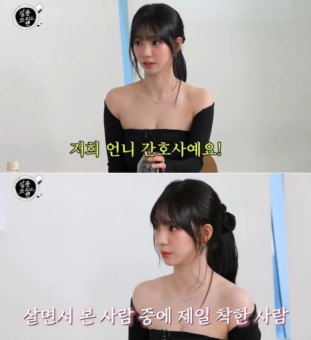 이어 친언니에 대해 이야기하며 남다른 자매애를 과시했다. 카리나는 "저희 언니는 간호사다. 살면서 본 사람 중에 제일 착한 사람"이라며 "우리 언니보다 더 착한 사람이 없다고 늘 이야기한다"고 말했다.