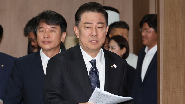 ▲ 더불어민주당 김병기 신임 원내대표가 15일 서울 여의도 국회 소통관에서 원내대표단 인선을 발표하기 위해 발언대로 향하고 있다.