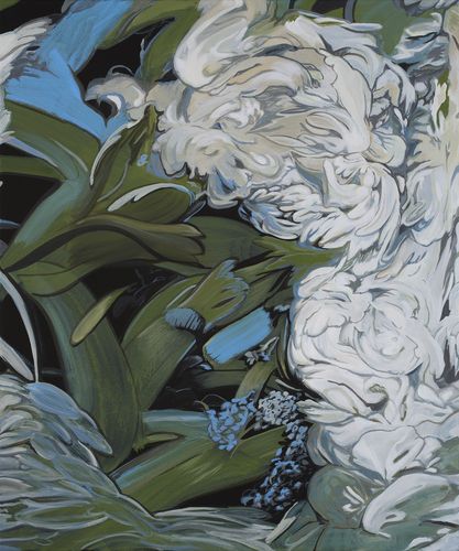 황지윤, 낙화 1 Falling blossoms 8(moonlight), oil and acrylic on canvas, 73×60㎝, 2024[OCI미술관 제공. 재판매 및 DB 금지]
