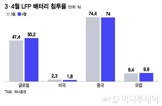 3·4월 LFP 배터리 침투율/그래픽=이지혜 |