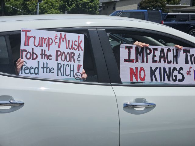 미국 워싱턴DC에서 미 육군 창설 250주년 행사가 열린 14일(현지 시간) 샌프란시스코 전역에서는 대대적인 노 킹스 시위가 열렸다. 실리콘밸리를 가로지르는 엘 카미노 리얼 대로에는 팔로알토 테슬라 매장부터 서니베일까지 7마일(11.26㎞)에 걸쳐 시위대가 '인간 띠'를 만들었다. 스탠퍼드대가 위치한 팰로알토는 일론 머스크 테슬라 최고경영자(CEO)가 페이팔을 창업한 곳이자 오랜 기간 거주했던 지역이기도 하다. 이런 이유로 팰로알토 테슬라 매장은 '반 트럼프, 반 머스크 시위'의 상징 같은 장소로 자리를 잡았다. 이날도 주최 측 추산 7000명 이상의 시위대가 참석, '미국에는 1776년 이후로 왕이 없다(King-Free Since 1776)', '트럼프를 탄핵하라', '이것이 민주주의의 모습이다(This is what democracy looks like)', ‘우리에게는 왕이 필요 없다’ 는 구호를 외쳤다. 대로를 오가는 차량들도 경적을 울리거며 시위대에 지지를 보탰다. 샌프란시스코에서도 돌로레스 파크부터 시청까지 수천 명이 행진을 했고 오클랜드, 산호세 다운타운 등에서도 수천 명이 집회를 갖고 행진을 했다. 다만 시위 주최 측이 시위대에 무기를 휴대하지 말 것과 경찰과 대화도 나누지 말 것을 당부해 경찰과 시위대의 물리적 충돌은 없었다.