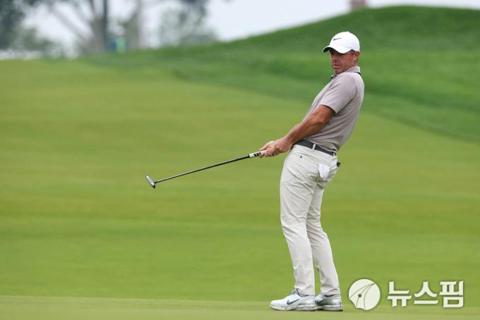 [오크몬트 로이터=뉴스핌] 장환수 스포츠전문기자= 로리 매킬로이가 15일 US오픈 3라운드 1번 홀에서 몸을 뒤로 기울이며 퍼트의 궤적을 바라보고 있다. 2025.06.15 zangpabo@newspim.com |