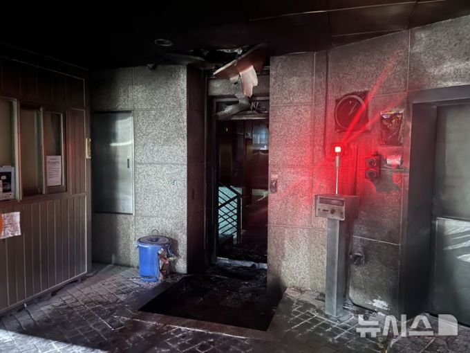 15일 충북 청주시 상당구 한 복합주거단지 지하주차장 입구에서 방화로 추정되는 화재가 발생했다. /사진=뉴시스(청주동부소방서 제공) |