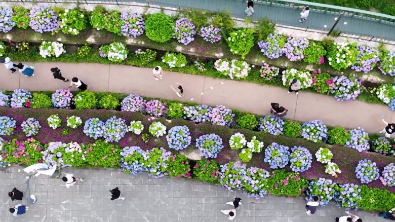 네, 보시는 것처럼 이곳은 오색찬란한 수국이 활짝 피어있습니다.