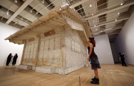 런던 테이트 모던의 '제네시스 익스비션 서도호: 집을 걷다'에 출품된 한옥 탁본 '러빙/러빙: 서울 홈(Rubbing/Loving: Seoul Home)'. epa=연합뉴스 |
