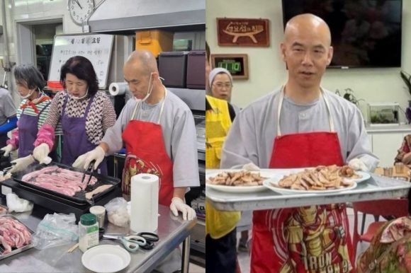 “고기반찬 빠지면 안 되지” 직접 삼겹살 굽는 주지스님 ‘화제’