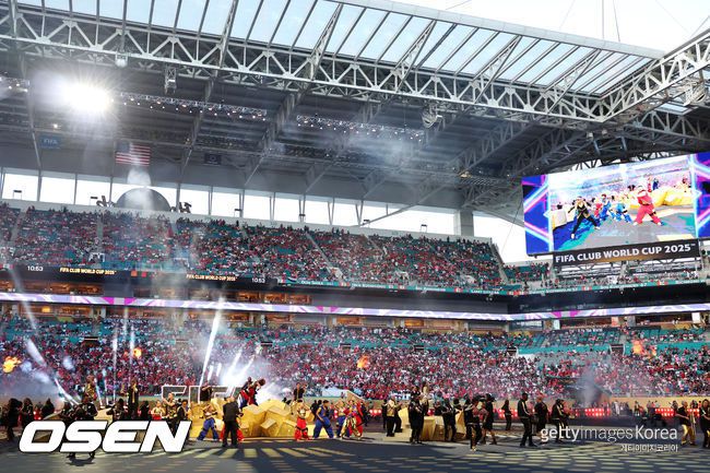 클럽월드컵의 개막전은 '숫자'로만 보면 흥행했다. 스타 마케팅, 이벤트성 퍼포먼스, 중계 카메라에 잡힌 유명 인사들까지 무대를 꾸몄다. 하지만 저렴한 티켓, 무료 입장, 티켓 미판매와 같은 현실은 FIFA가 꿈꿨던 '세계 최고의 대회'와는 거리가 멀었다. 외형은 성공적이었지만, 내실은 여전히 위태롭다. /reccos23@osen.co.kr