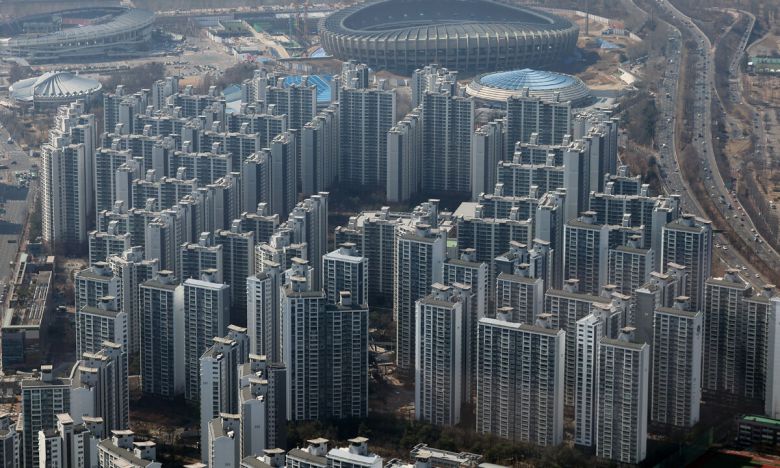 서울 송파구 롯데월드타워에서 바라본 강남 아파트 단지 모습. 뉴스1