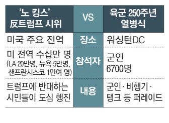 샌프란시스코·뉴욕·LA·필라델피아 등 미국 주요 도시에서 열린 '노 킹스' 시위에는 미국 전역에서 수십만 명이 참가한 것으로 추정된다. 올해 1월 트럼프 대통령이 취임한 이후 최대 규모 반대 집회다.