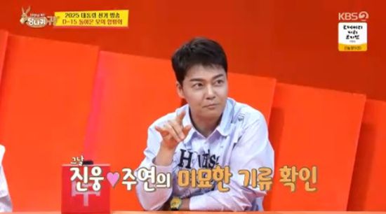 (엑스포츠뉴스 원민순 기자) 전현무가 김진웅과 홍주연의 미묘한 기류를 포착했다고 밝혔다.