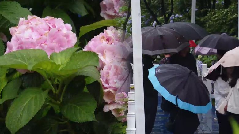 장대비가 내리지만, 장생포 수국축제장을 찾은 시민들은 색색의 우산을 쓰고 오색 수국 사이를 걸으며 축제를 즐깁니다.